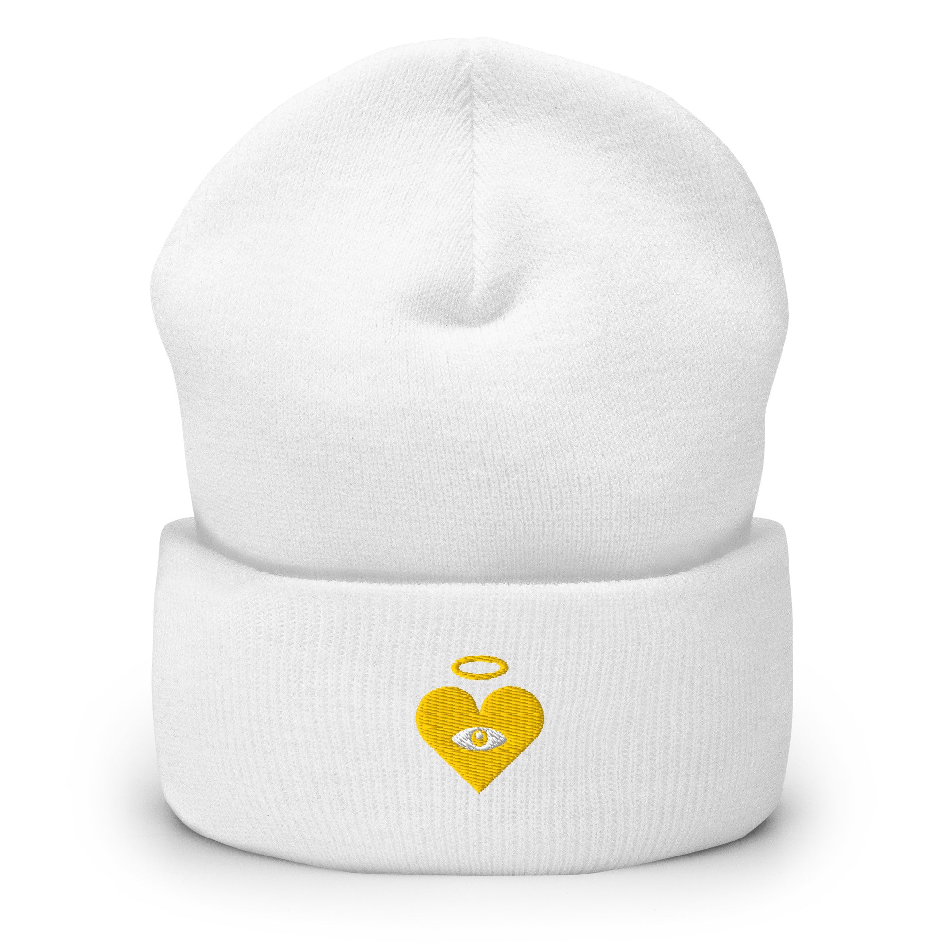 Monochrome Gold Heart-Eye [Embroidered] Basic Beanies